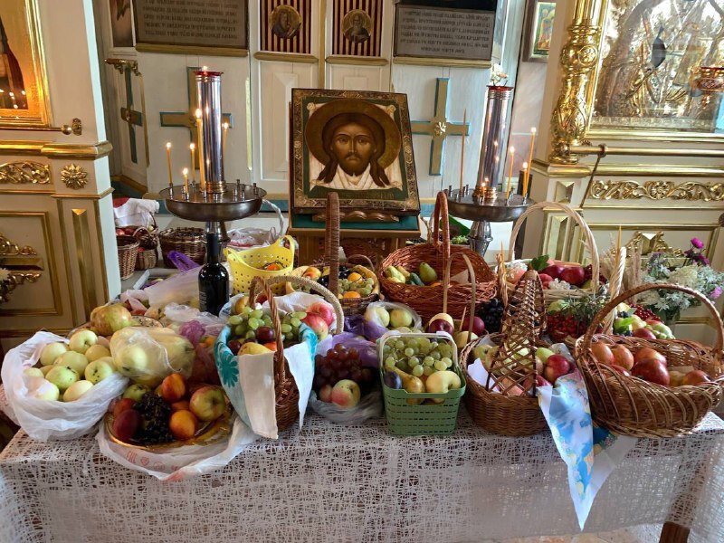 По завершении богослужения состоялся крестный ход и освящение плодов нового урожая.