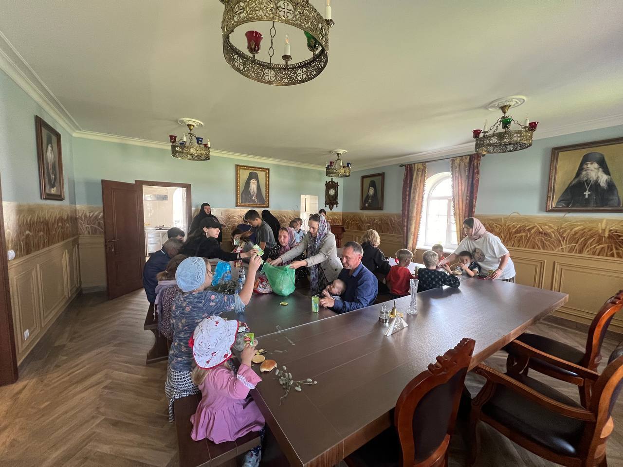В селе Меренищи побывали в новопостроенном храме в честь Преображения Господня, подкрепились гостинцами, взятыми в дорогу от бабушки Любы, которая уже несколько лет кормит по Воскресеньям ребят при храме.