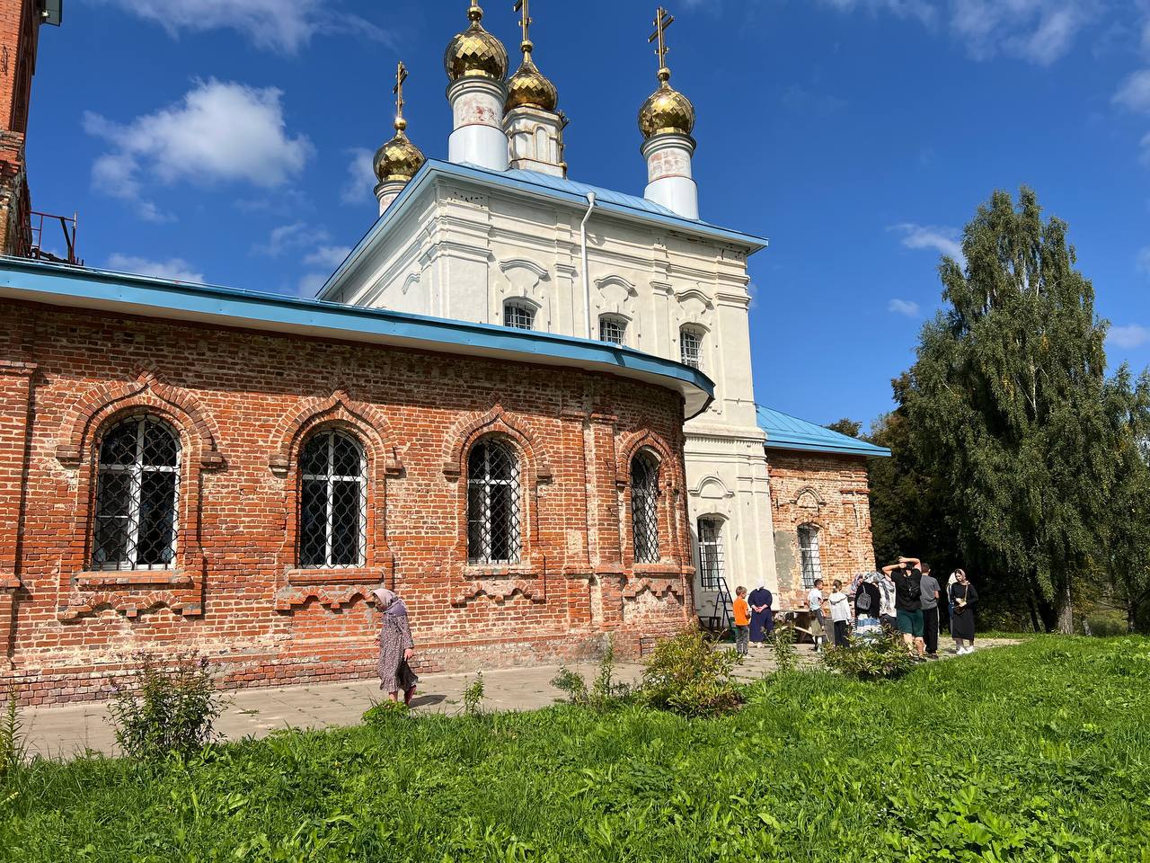 7 сентября, по окончании Божественной Литургии воспитанники Воскресной школы при храме Преображения Господня села Нижние Прыски отправились в паломническую поездку по старинным храмам Козельского уезда. В поездке приняли участие настоятель храма иерей Тихон Худяков, дети и их родители, а также прихожане и гости прихода.