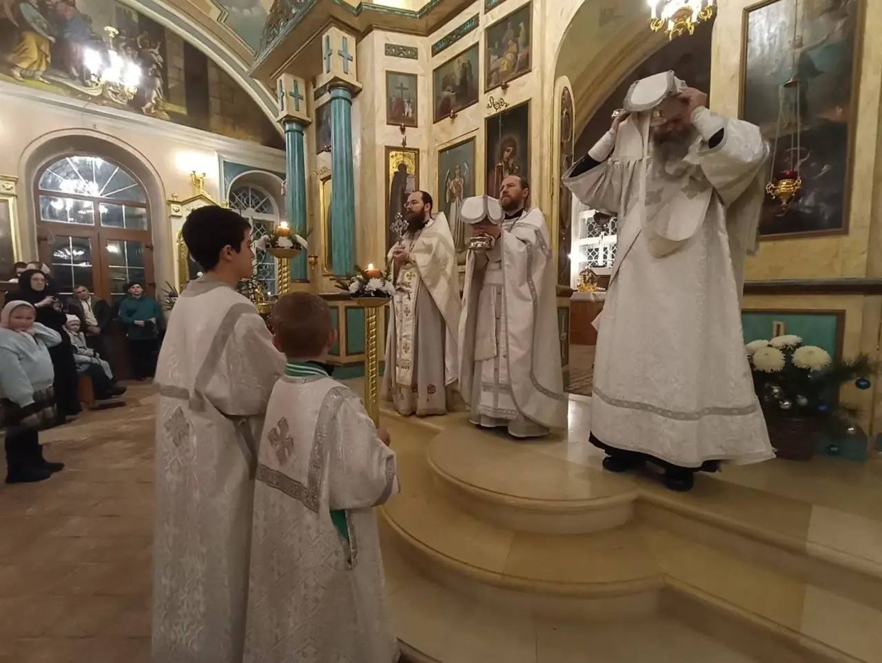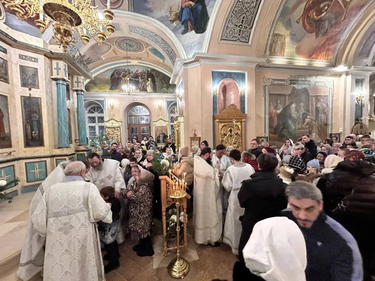 Всенощное бдение возглавил настоятель храма иерей Тихон Худяков, а ночную Божественную литургию иерей Симеон Худяков. За Богослужением были оглашены Рождественские послания святейшего патриарха и правящего архипастыря.